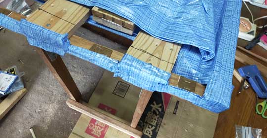 クッションのアルミシート8mm厚だがダイソーのタッカー(ホッチキスの大きいやつ)じゃちょっと心配。5mm厚のほうがいいかな。