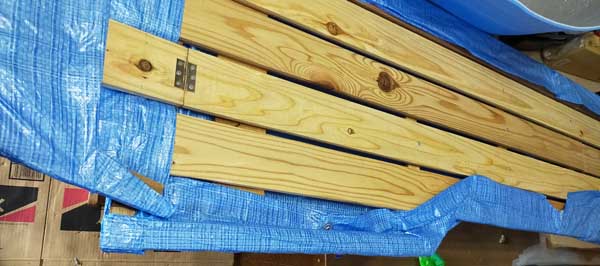 すのこ状態(ブルーシート、アルミシート貼る前)で車に設置テストした時を撮影しておくべきだったorz