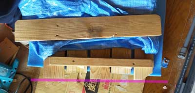 実際の所、まずは縦板を実車に並べて切る位置決めて、次は体重が掛かりそうな所に水平になるように横板を積み重ねて足にして。ほとんど寸法など測らずに現場合わせで作ってました。廃材も切らずにそのまま使ったり。